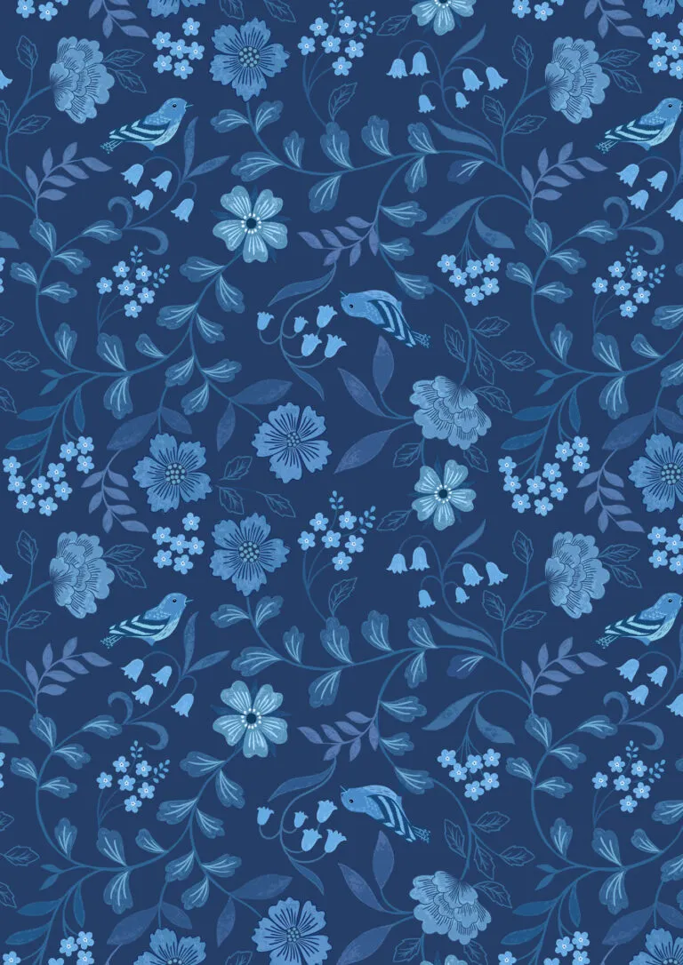 Lewis & Irene Forget Me Not Lane Dark Blue Floral Print